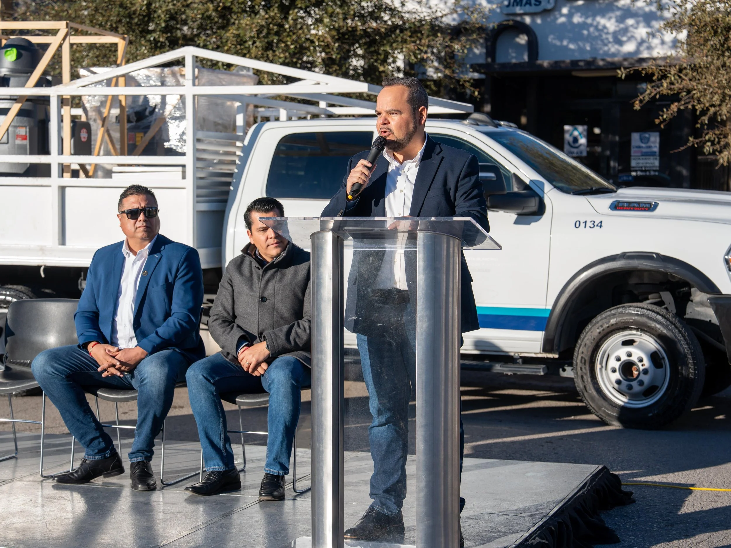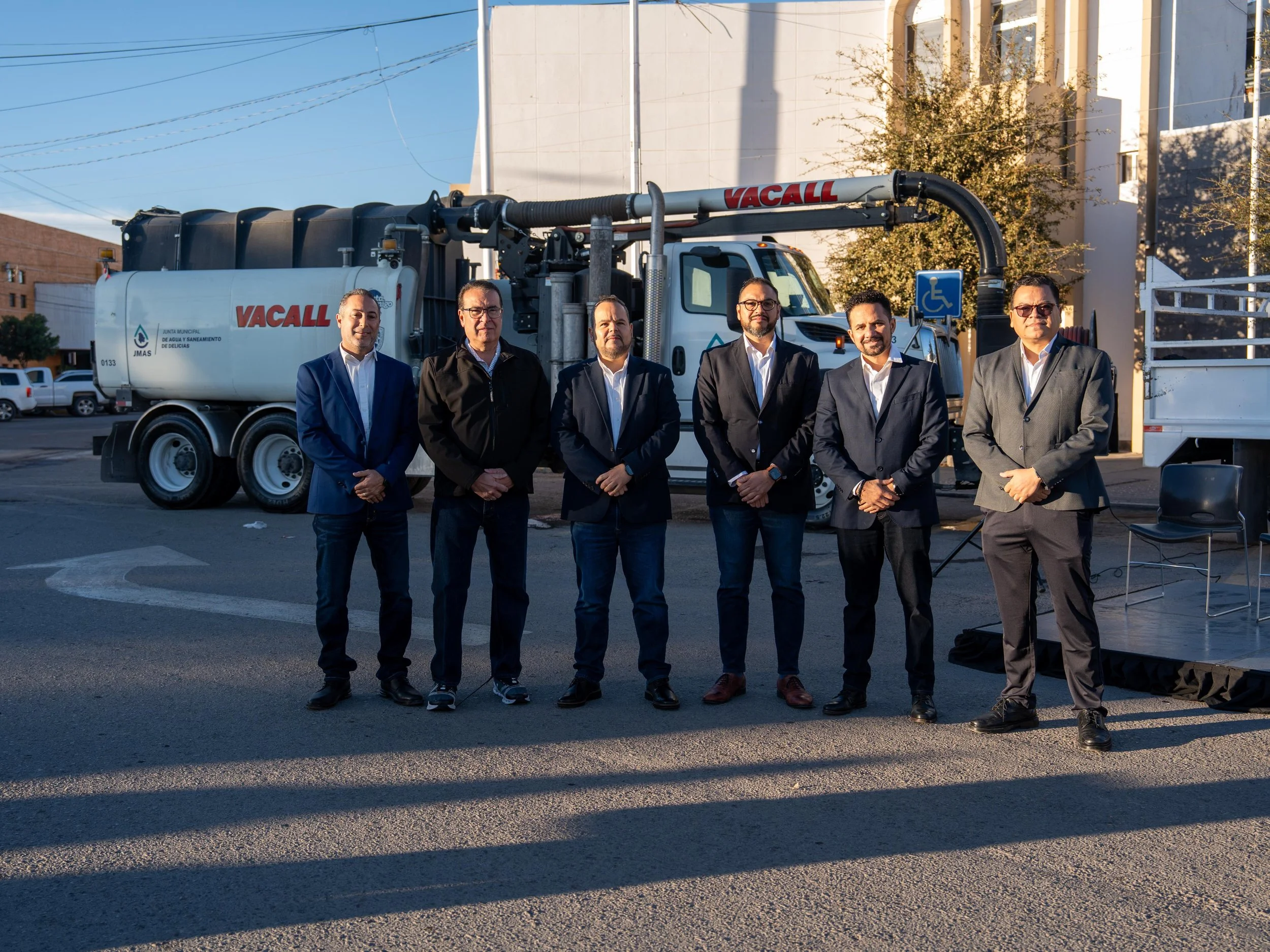 Sobre la plazoleta del Reloj Público de Delicias se puso en funcionamiento una nueva máquina Vactor y otros aditamentos para pozos, encabezando el acto Juan Carlos Velasco, director ejecutivo de la Junta Municipal de Agua y Saneamiento de Delicias.